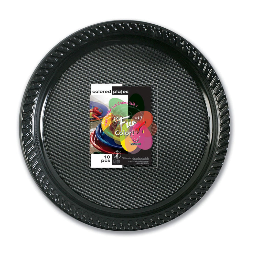 Level up your party game with Fun® Color Party Plastic Plates set! Perfect for any occasion, these large, black plates come in a pack of 10. No need to worry about broken dishes, these durable plates will make cleanup a breeze. Elevate your party with Fun®!