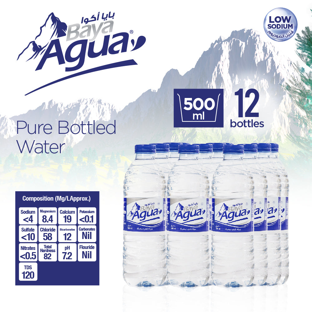 Quench your thirst with Baya Agua® Drinking Water! This pack of 12, 500ml bottles is perfect for staying hydrated on the go. With Baya Agua®, you'll always have pure, refreshing water at your fingertips. Stay cool and hydrated with Baya Agua®!
