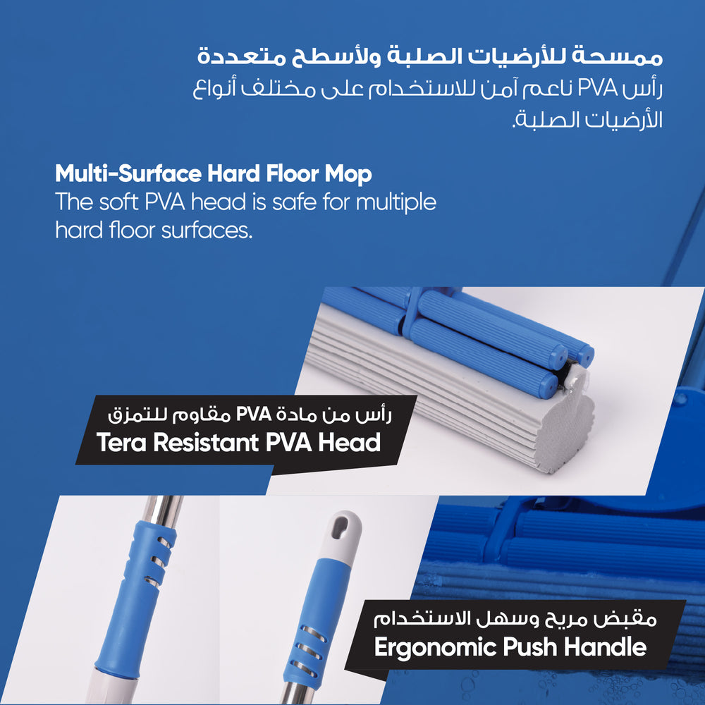 امتصاص فائق: رأس من مادة PVA المتطورة يمتص السوائل المنسكبة ويلتقط الغبار بدقة متناهية.