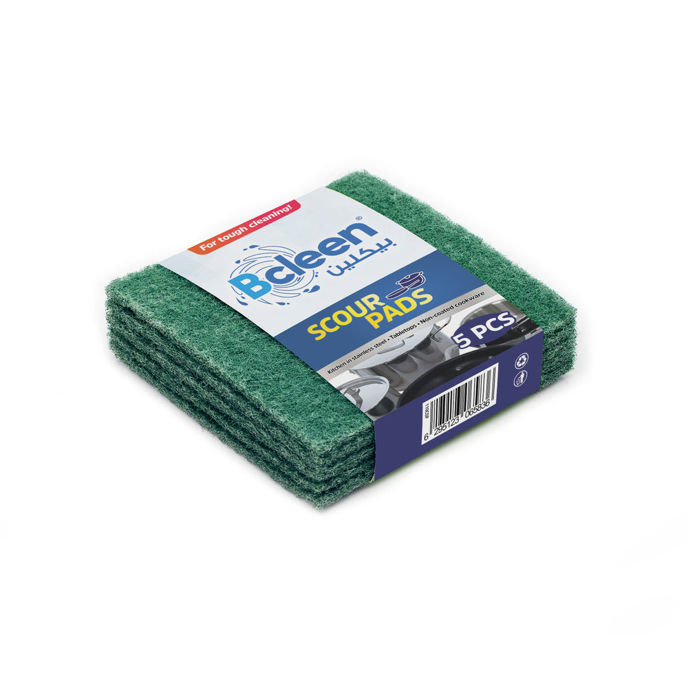 Bcleen® Scouring Pad - green 5.5 x 5.5" 5 Pieces is a pack of high-quality scouring pads designed to tackle tough cleaning tasks around your home. Whether you're cleaning dishes, countertops, or other surfaces, these scouring pads are up to the task.