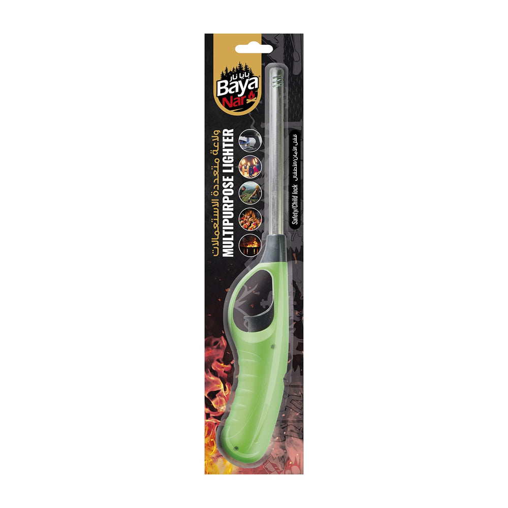 Light grills, candles, fireplaces, and campfires safely and easily. The Baya Nar Premium Gas Lighter features a long nozzle to keep your hands away from the flame, with an adjustable jet and a visible fuel window.