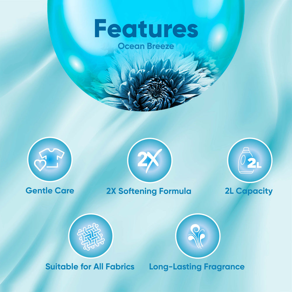 Bcleen® Concentrated Fabric Softener with Ocean Breeze Scent is a powerful laundry solution that makes clothes feel soft, fresh, and clean. This Ocean Breeze scent fabric softener is available in a 2L bottle, making it perfect for regular use in households of all sizes.