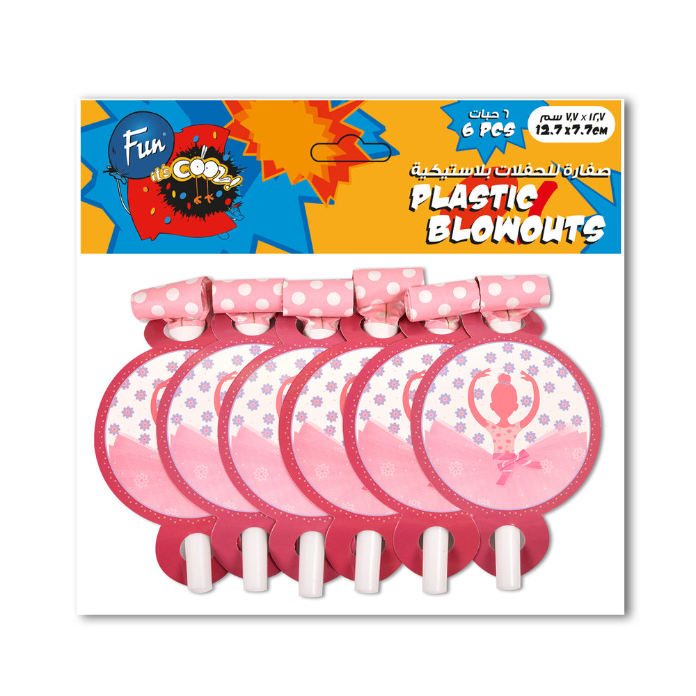Bring some fun to your party with Fun® Its Cool Plastic Blowouts! These 12.7*7.7cm blowouts in a pack of 6 feature a playful ballerina design. Get ready to make some noise and have a blast in style!