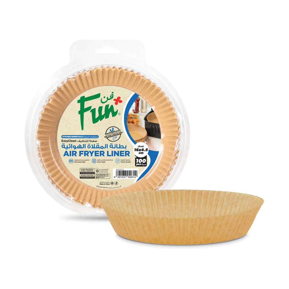 Enhance your air frying experience with Fun® Round Air Fryer Paper Liners. These high-quality, 16x4.5cm liners keep your food from sticking to the fryer, making clean-up a breeze. With a pack of 100, you'll always have a fresh liner on hand. Enjoy perfectly cooked food with ease, every time.