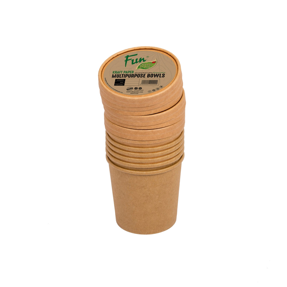 Add a fun twist to your everyday kitchenware with Fun® Kraft Paper Multipurpose Brown Bowls! Perfect for serving your favorite snacks, soups, and even meals, these 26oz bowls come with a brown lid for easy storage. With a pack of 6, you'll have plenty for your next party or family gathering. Go green with these biodegradable bowls!