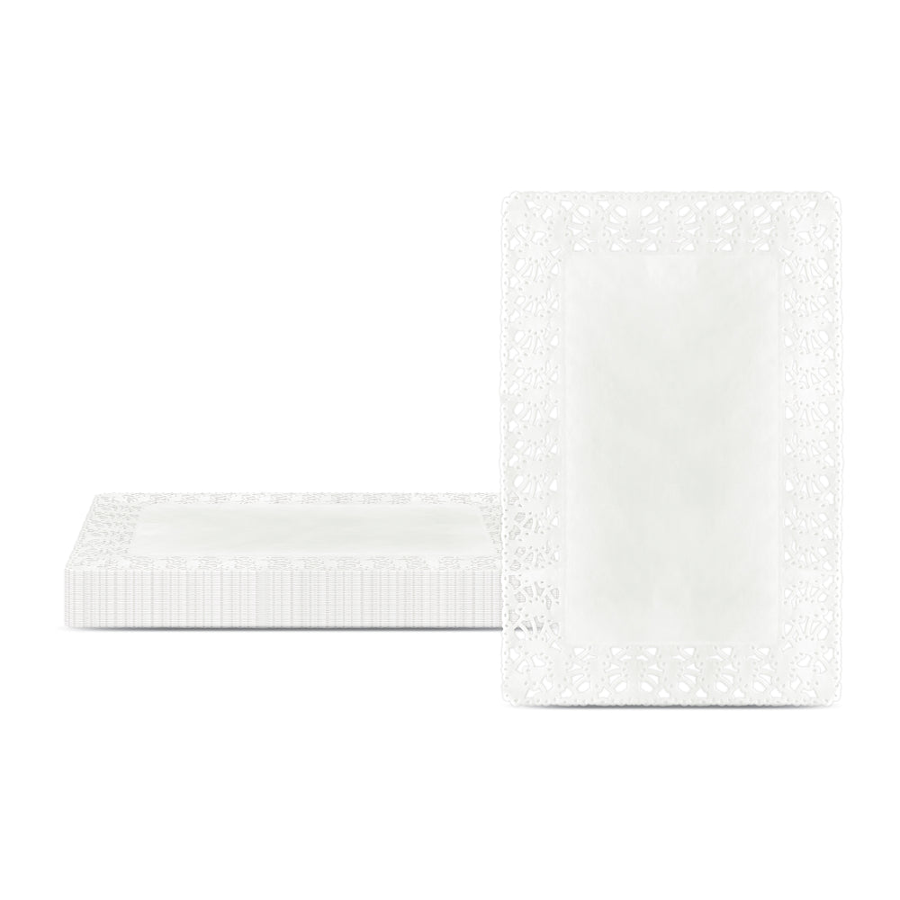 These rectangular paper doilies are designed for lining trays, platters, and boxes. They provide a sophisticated, food-safe barrier that is both hygienic and 100% recyclable after your event.