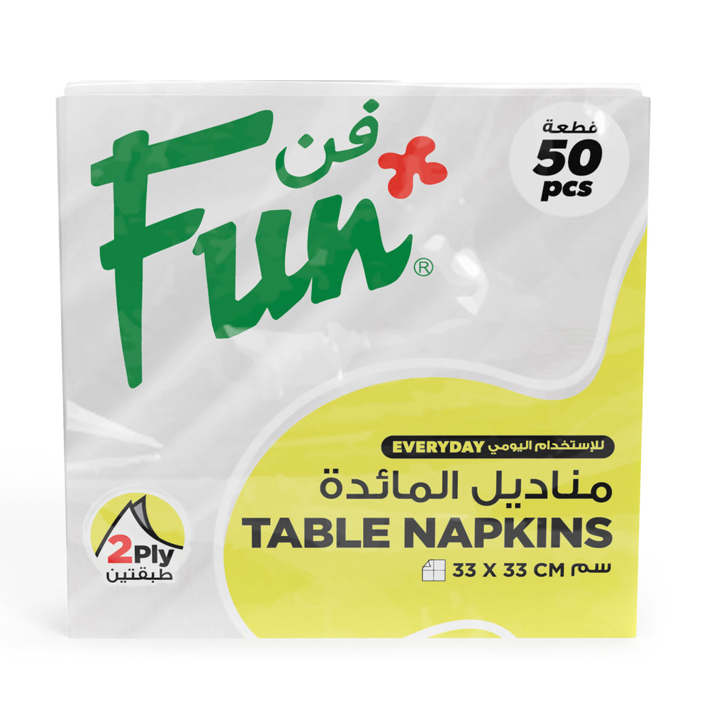 Introducing Fun® Premium 2-Ply White Table Napkin! Available in 25x25cm (100pcs), 33x33cm (50pcs), and 40x40cm (50pcs), these napkins add a playful touch to any table setting. Say goodbye to boring plain napkins and hello to fun and quirky ones! (Seriously, who knew napkins could be this fun?)