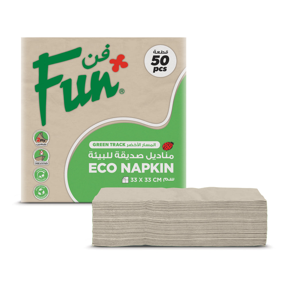 Expertly crafted Fun® Green Track Unbleached 2-ply Eco-Napkins are the perfect addition to any eco-friendly household. These 33x33cm napkins are made from sustainable materials and come in a pack of 50, providing both practicality and sustainability for your everyday needs.