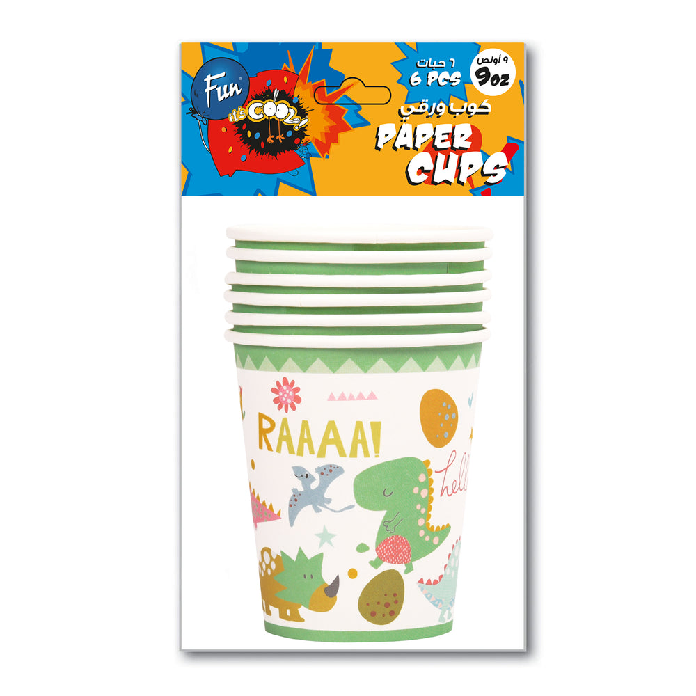 Quench your thirst in style with Fun® Its Cool Paper Cup 9oz - Dinosaur 6pcs! These playful cups feature a whimsical dinosaur design that will add a touch of fun to your party or everyday use. Made from sturdy paper, they are perfect for both hot and cold beverages. Let the good times roar with these cool cups!