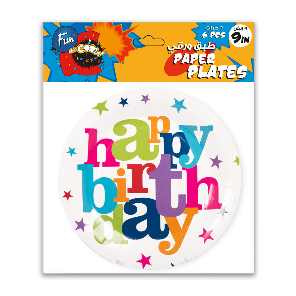 Celebrate in style with Fun® Its Cool Paper Plate 9in - Happy Birthday 6pcs! These playful plates add a touch of fun to any party. With a happy birthday design and 6 plates per pack, these plates are perfect for any celebration. Make your next party a blast with these quirky and cool plates!