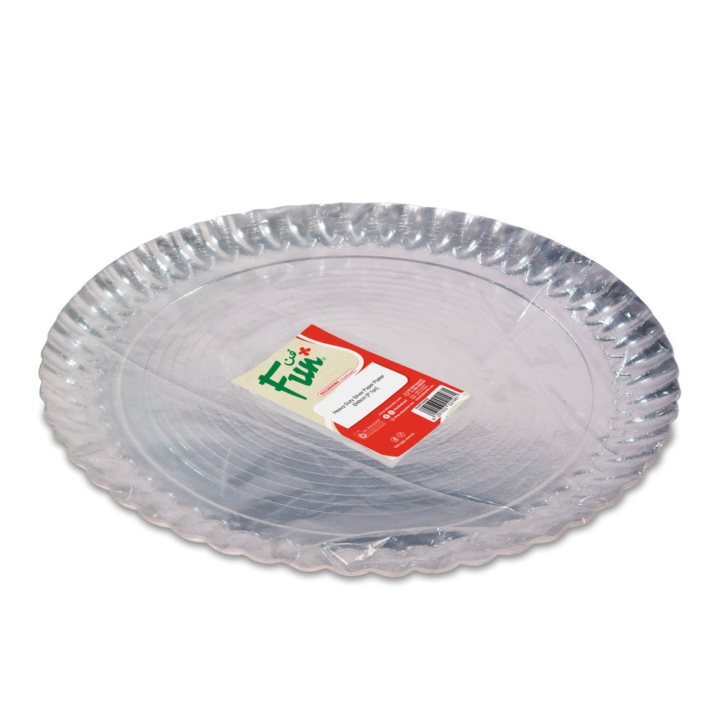 Get the party started with Fun®'s Heavy Duty Silver Paper Platter! This platter is not only sturdy and durable, but also adds a touch of elegance to any gathering. Perfect for large portions and easy clean-up. (Party on!)