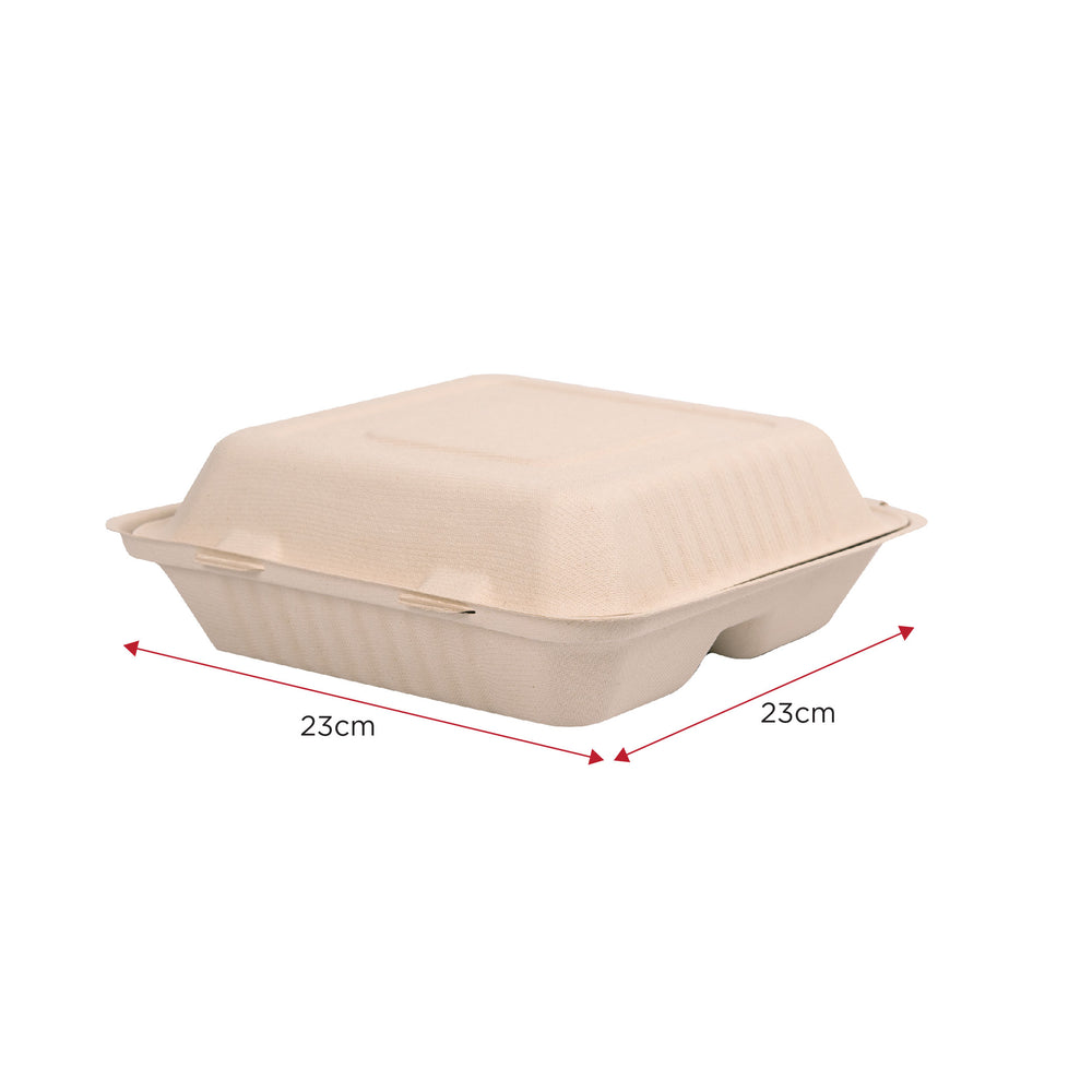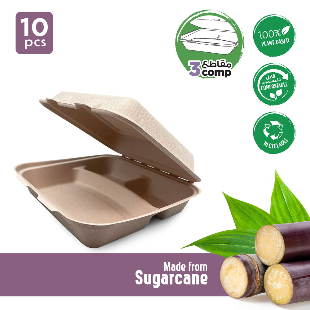 Introducing Fun® Sukkar Pulp Clamshell 3-Comp. Boxes 9x9in [5pcsx1pkt]. These boxes are perfect for storing your favorite treats and organizing your meals. Say goodbye to messy containers and hello to convenient and eco-friendly packaging. Enjoy the sweetness of convenience with Fun® Sukkar!
