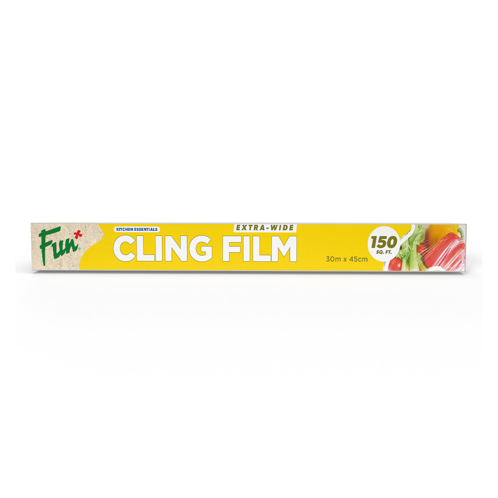 Get your food party-ready with Fun® Cling Film! This 45cmx30m roll of 11mic film is perfect for wrapping and preserving your favorite snacks and dishes. Plus, the quirky and playful design will add some fun to your kitchen adventures! (Warning: may cause uncontrollable food fights)