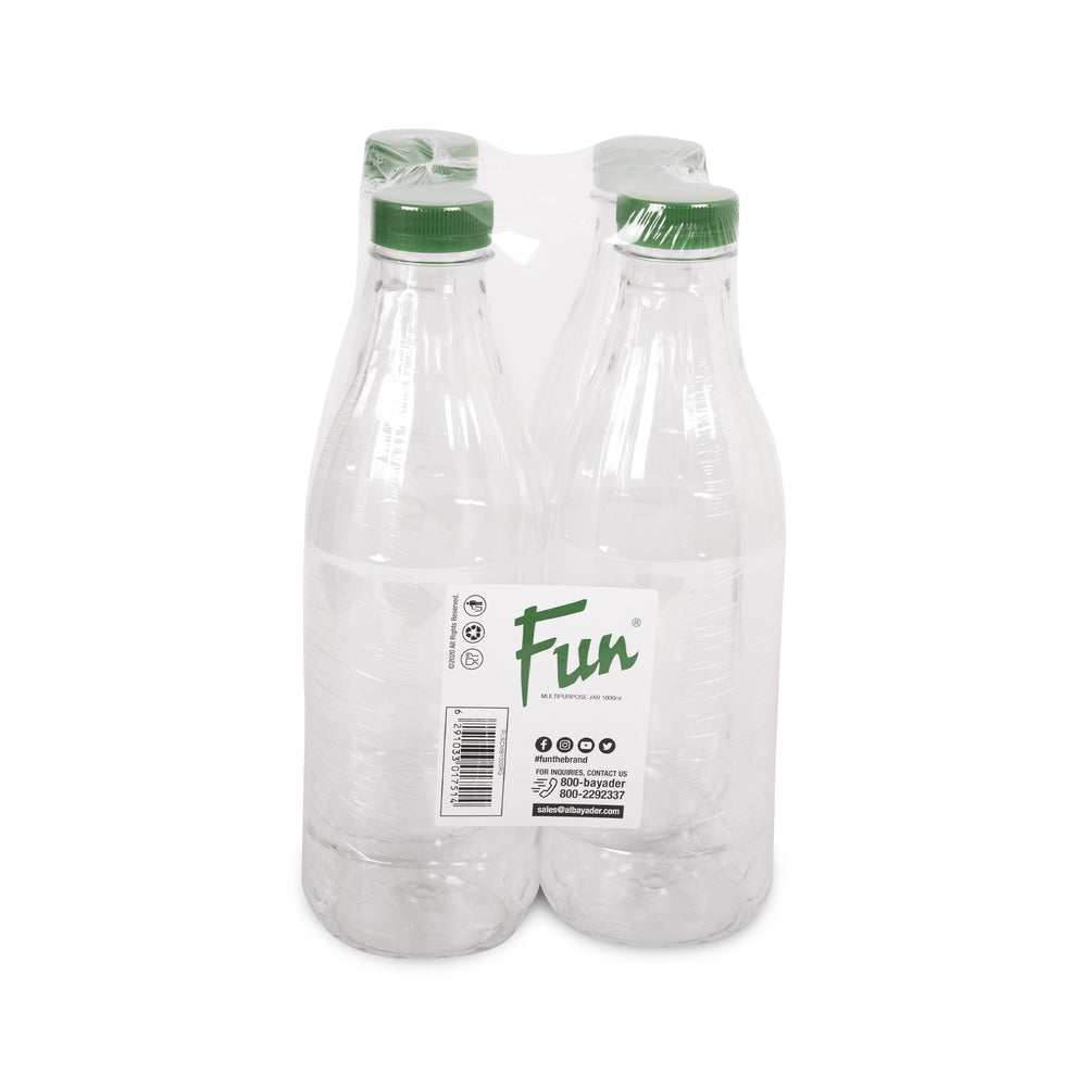 Introducing Fun® Multipurpose Bottle - the perfect addition to your everyday routine! With a 1000ml capacity and convenient lid, this bottle is functional and fun. Comes in a pack of 4, perfect for sharing with friends or family. Stay hydrated in style with Fun®!