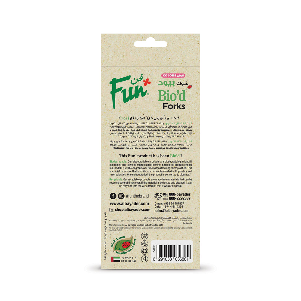 Go green with our Fun® Bio'd Colors Ruby Red Fork! Made from Made with our innovative Bid'd material, Disposable Forks can easily biodegrade in landfills. Keep the planet happy while you party! 18 forks in each pack, measuring 6.8 inches. Join the movement and choose sustainability with every bite.
