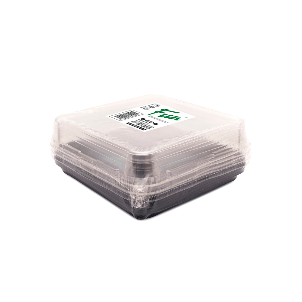 Elevate your food presentation with Fun® Gourmetpac! These transparent, 232x232x40mm PET containers come with flat PET lids, perfect for storing and showcasing your delicious creations. Enjoy a pack of 5 for all your entertaining needs. (Bon appétit!)
