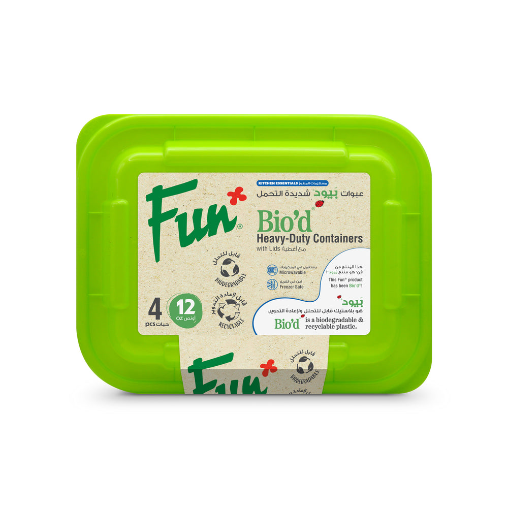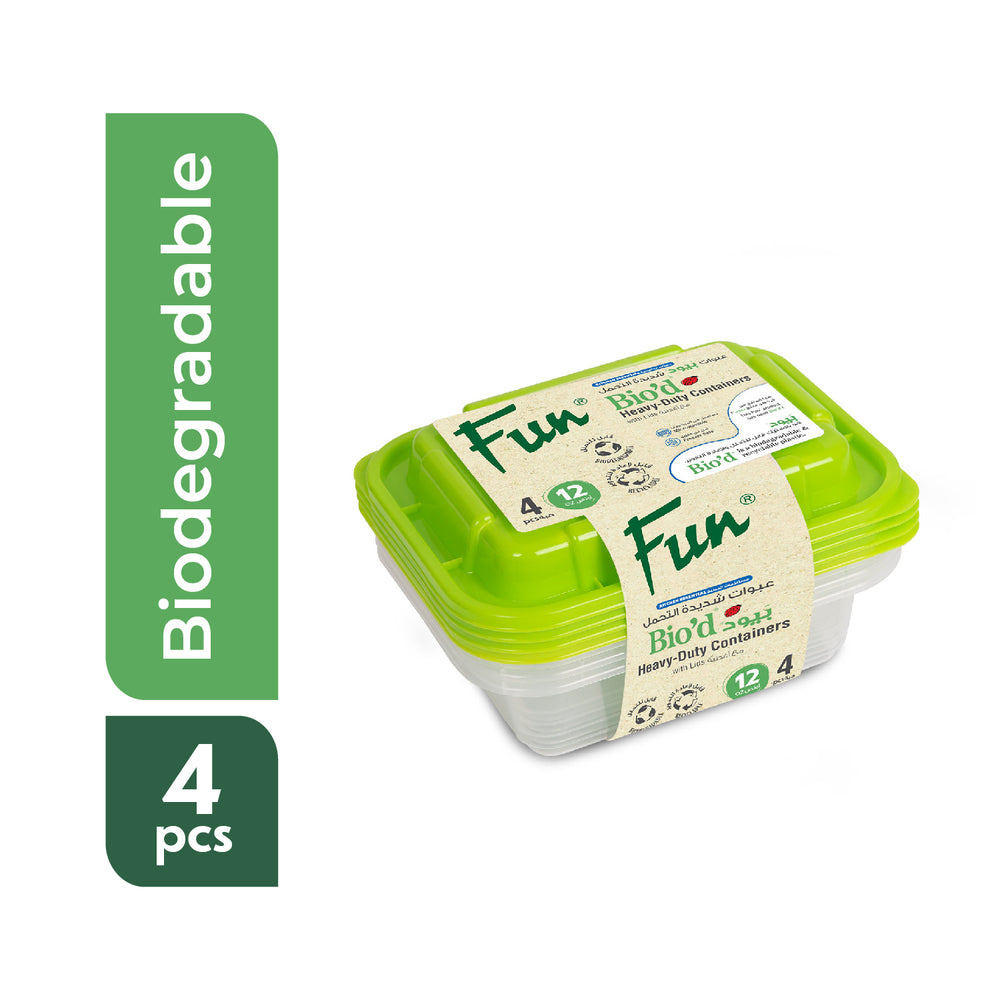 Reduce waste and save the Earth with Fun® Bio'd Clear Rectangular Container! Made from biodegradable material, it's perfect for eco-conscious consumers. Each pack includes 4 containers with green lids, each holding 12oz. Use it for various plastics and dispose of it guilt-free.