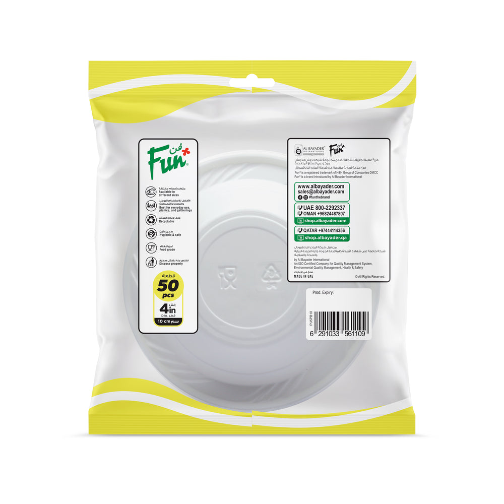 Serve up fun with Fun® Plastic White Bowl! This pack of 50 bowls, each measuring 10cm in diameter, is perfect for parties and events. Durable and versatile, they're sure to add some flair to any food or snack. Get ready to bowl everyone over!