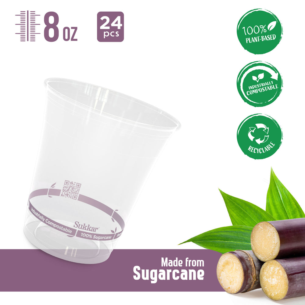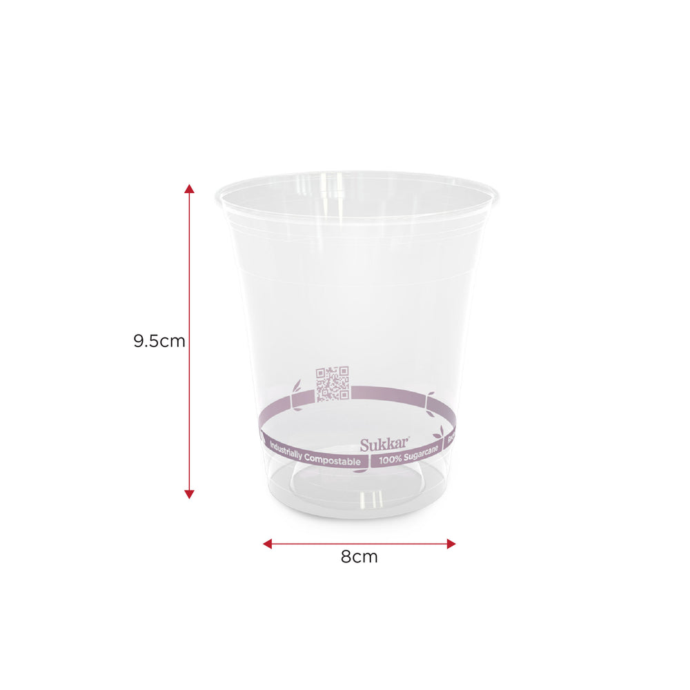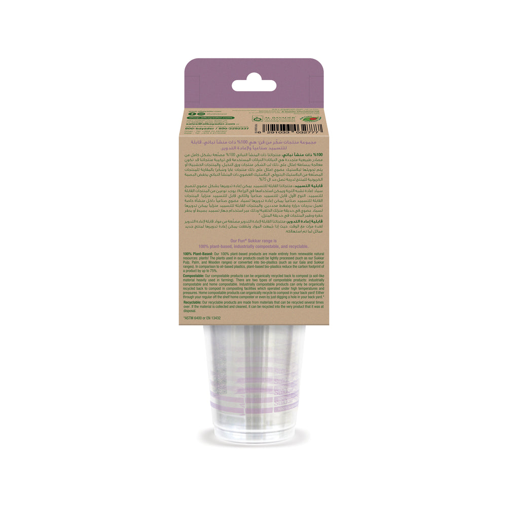 Fun Sukkar Clear Cup 8oz [12pcs x 1pkt] features an environmentally friendly design made from 100% plant-based materials, promoting a greener lifestyle and reducing our CO2 emissions.