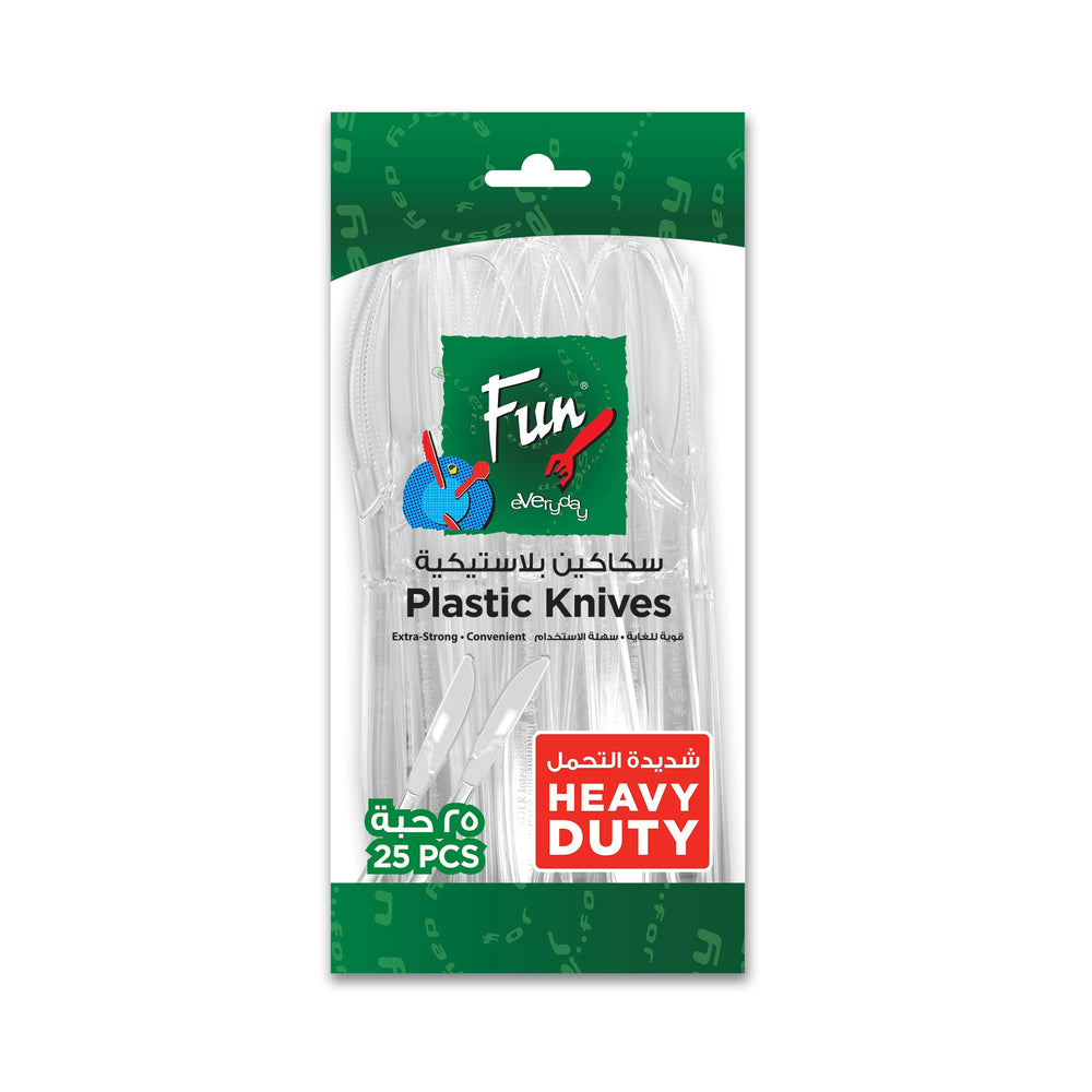 Unleash the FUN with our Heavy Duty Plastic Knife set, perfect for any party! These Transparent 25 Pcs are a must-have for any occasion, providing both functionality and style. Say goodbye to flimsy knives and hello to durable FUN with our set - you won't want to host a party without them!