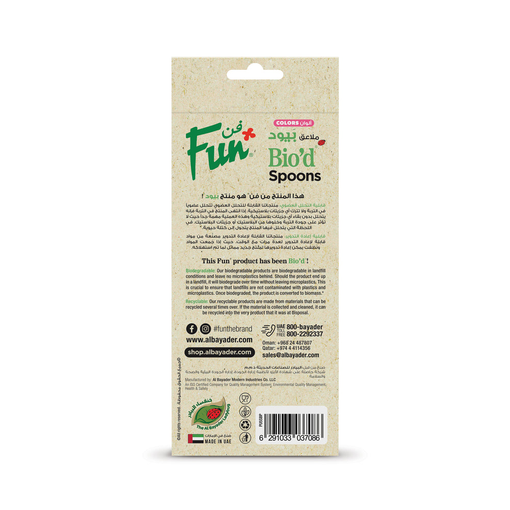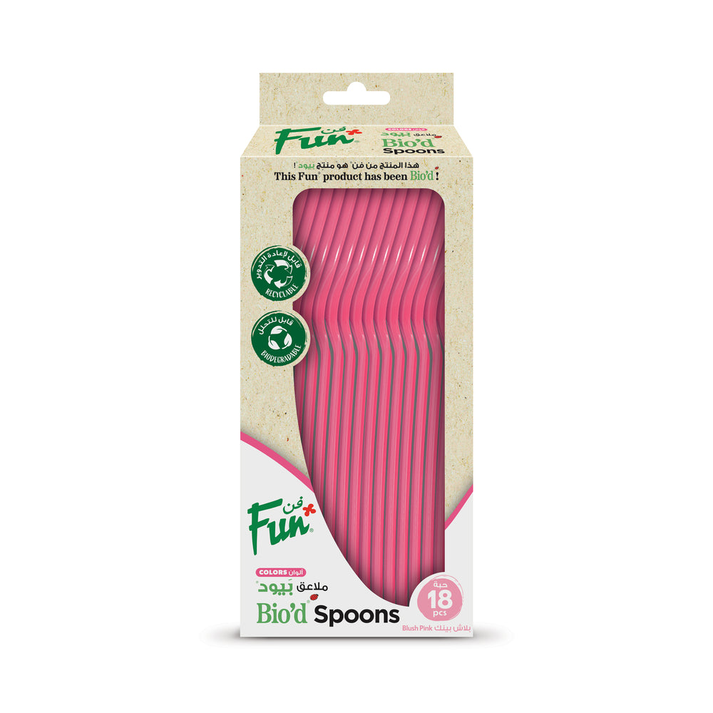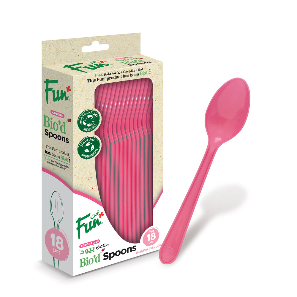 Be kind to the planet while adding a pop of color to your table with Fun® Bio'd Colors Blush Pink Spoons. Made from our special bio-degradable material, these 6.5in spoons are perfect for environmentally-friendly events. Each packet contains 18 spoons, making it easy to stock up for any occasion.