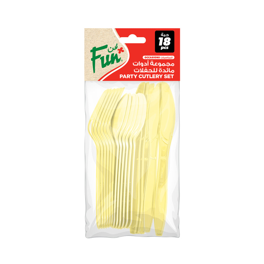Add a pop of color to your next meal with our Fun® Heavy-Duty Cutlery Set! This pack of 18 includes sturdy utensils in a light yellow hue. Perfect for parties, picnics, and everyday use. Bring some fun to your table (without breaking the bank)!