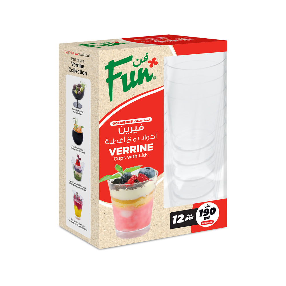 Spice up your next party with Fun® Verrine Clear Crystal Cups! These stylish cups hold 190ml and come in a pack of 12 for all your entertaining needs. Perfect for serving cocktails, desserts, or even miniature appetizers. Add some flair to your event and be the talk of the town!