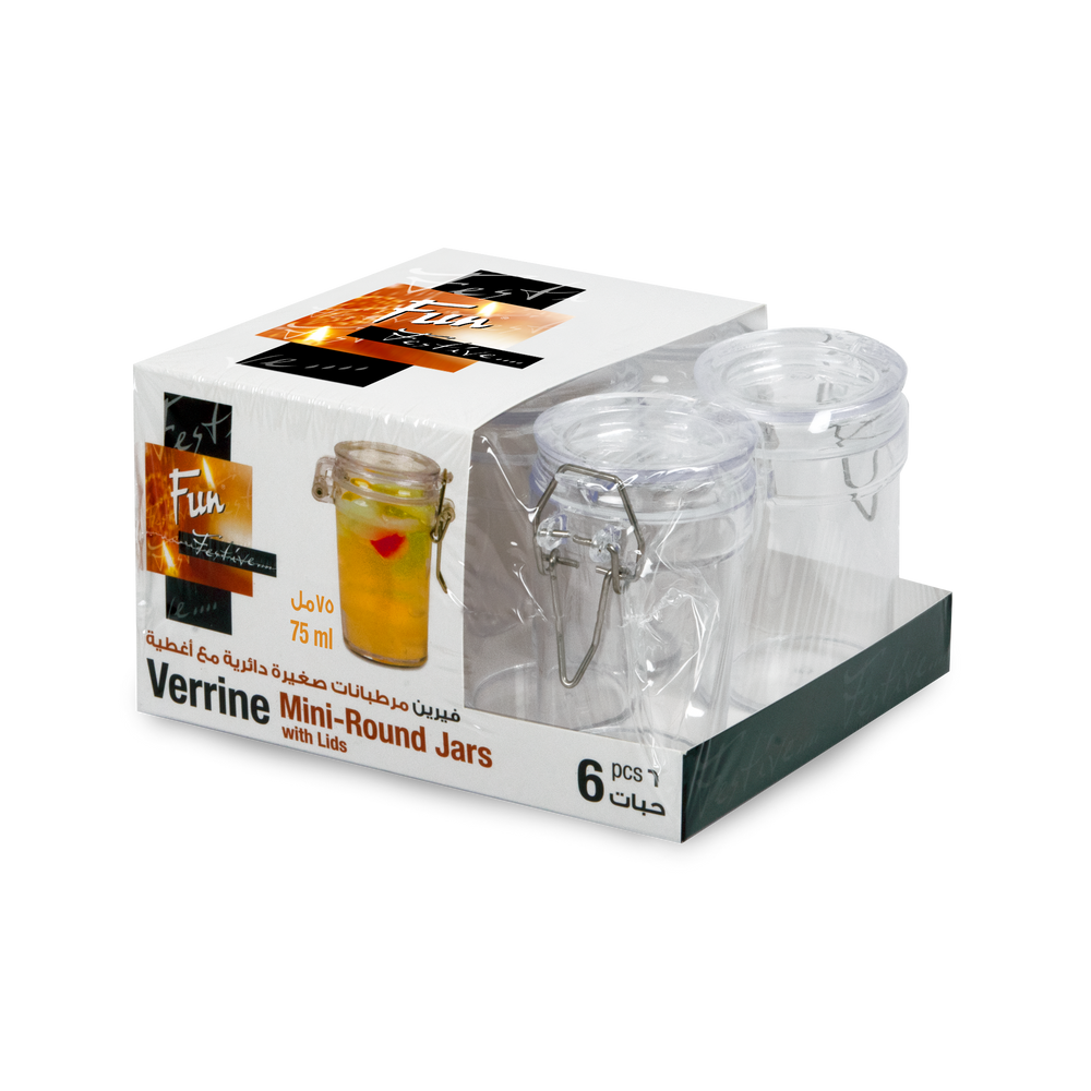 Get ready to add a dash of fun to your kitchen with Fun® Verrine Mini Round Jars! This pack of 6 jars comes with lids, perfect for storing and serving your favorite snacks and treats. With a capacity of 75ml, these quirky jars are a must-have for any food lover.