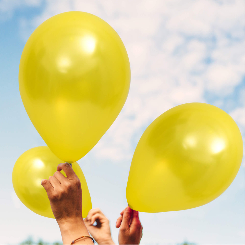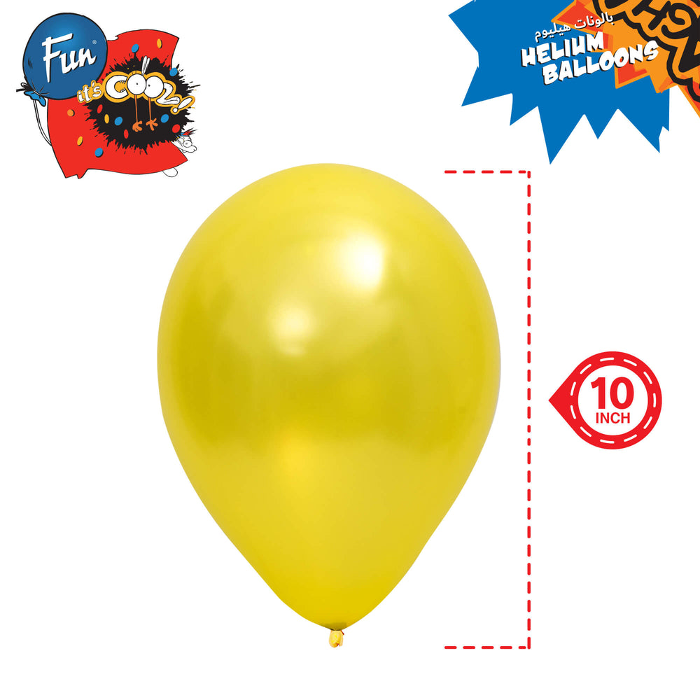 Bring some playful color to your next event with Fun® Balloon's 10inch metallic yellow pack of 15! Create a one-of-a-kind atmosphere with these quirky and fun balloons. Perfect for parties, celebrations, and adding a touch of whimsy to any occasion.