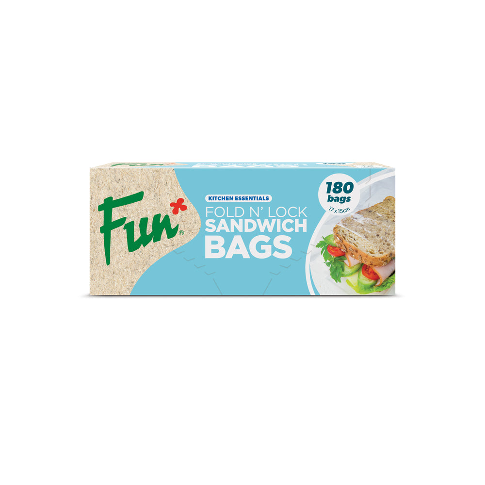 Pack your lunch in style with Fun® Fold N'Lock Clear Sandwich bags. These convenient bags feature a unique fold and lock design to keep your sandwiches fresh and secure. With 180 bags in each pack, you'll have plenty for all your on-the-go meals. Say goodbye to boring plastic bags and add some fun to your lunch routine.