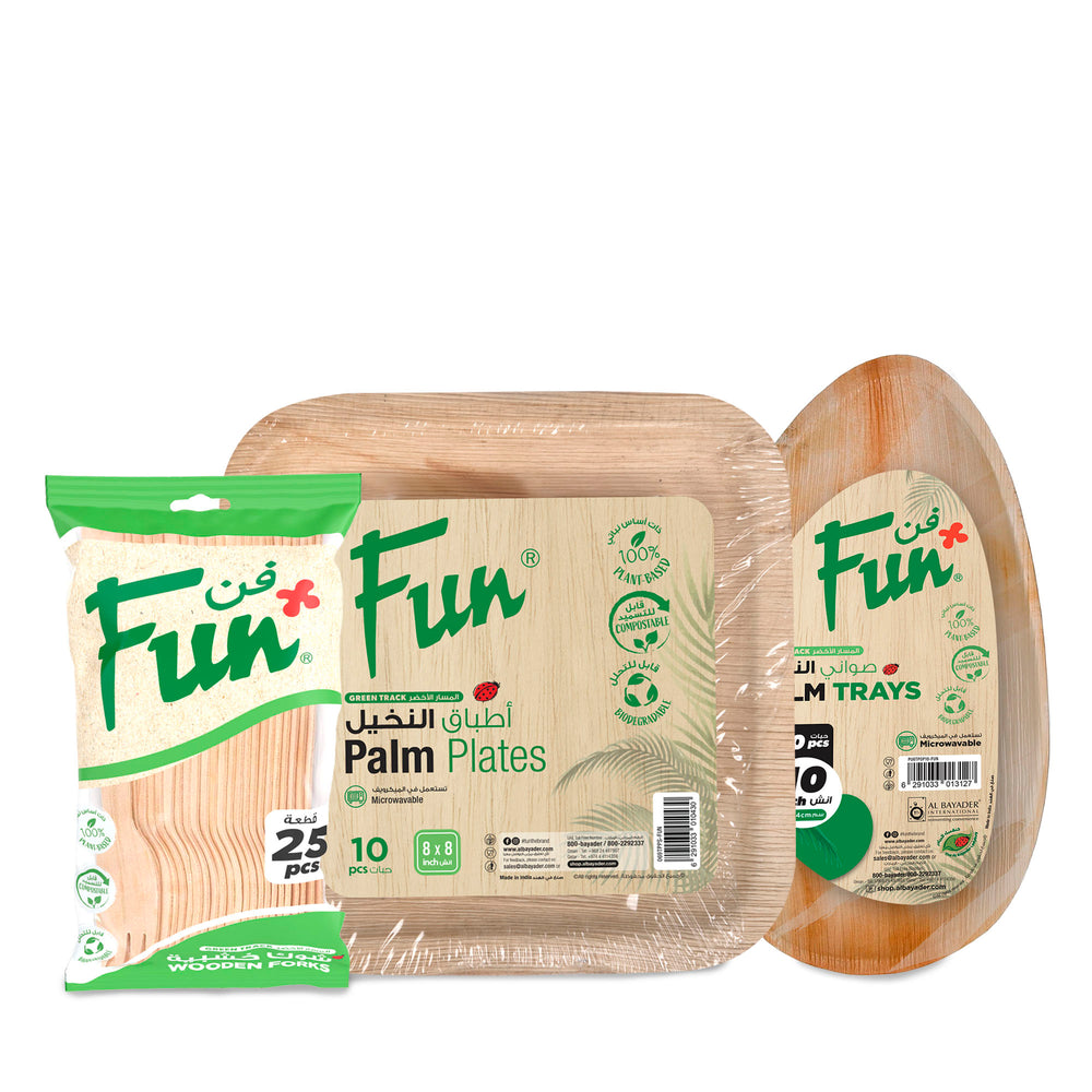 Elevate your eco-friendly gatherings with our Fun® Promopack combo! This playful set includes wooden forks paired with two styles of plates, giving you everything you need for a sustainable celebration. Perfect for picnics, parties, or casual get-togethers where convenience meets environmental consciousness. Ditch the plastic and make mealtime more fun!