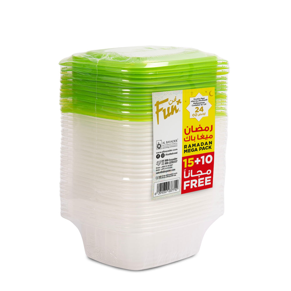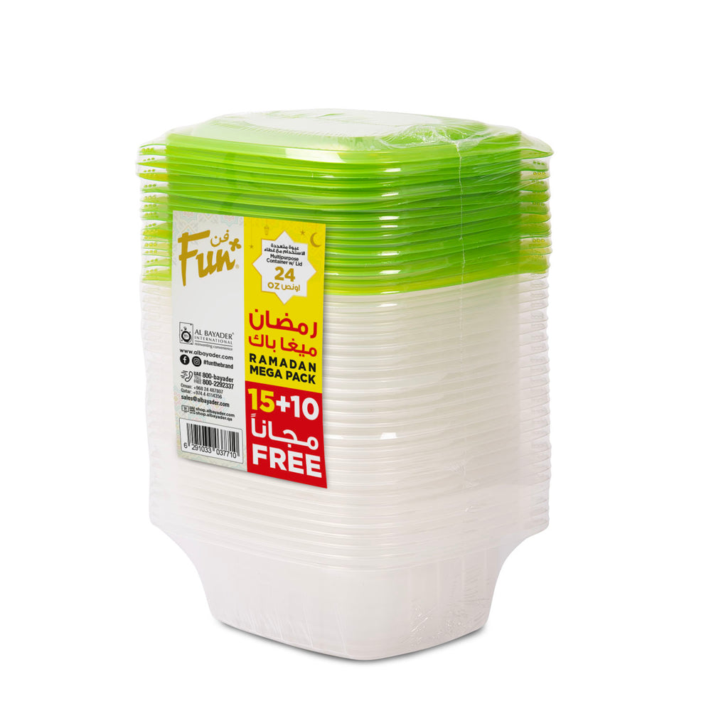 Introducing Fun® Ramadan Mega Pack, the perfect solution for all your storage needs during the Holy month. This pack includes 25 multipurpose containers and lids, with 10 bonus containers to make your life easier. Keep your food fresh and organized with this convenient and playful pack.