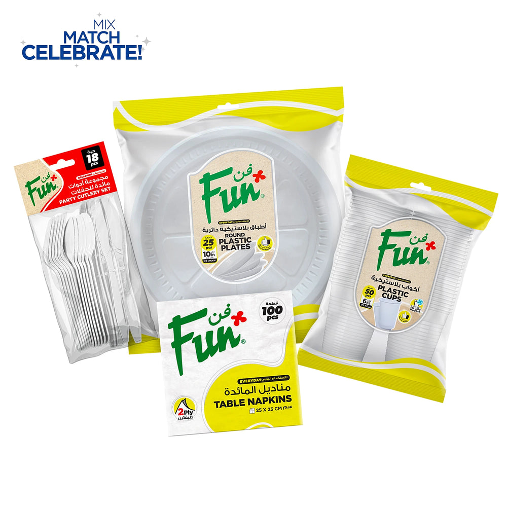 This all-in-one kit equips you with dependable, everyday essentials for serving and cleanup. You'll find sturdy white plastic plates, cups, and heavy-duty cutlery that handle all your party snacks and meals with ease. No more worrying about dishes or fragile items – simply set up and enjoy! Our included white table napkins are perfect for any spills or quick cleanups, ensuring your event runs smoothly from start to finish.